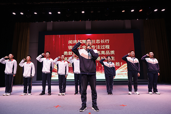 随后,全体学生挺胸抬头,庄严宣誓。誓言铮铮,回荡在体育馆内,也深深烙印在每一个学子的心中。