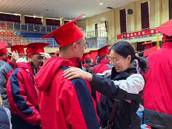 最令人动容的环节如期而至。家长们亲手为孩子戴上成人帽,象征着责任的传承与爱的延续。随后,亲子双方互换信件,拆开那封尘封着牵挂与鼓励的家书,字里行间的深情让不少同学热泪盈眶。