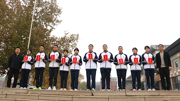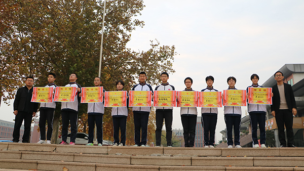 在热烈的掌声中,优秀班级代表依次上台,田延东副校长、刘忠飞主任、雷付海主任等领导为同学们颁发荣誉证书并合影留念。随后,雷付海主任宣读了自管会优秀学生名单,自管会代表上台接受荣誉。