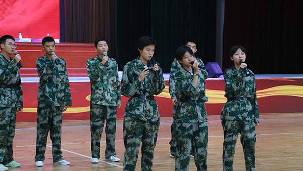 展演在全场大合唱中迎来终章,《保卫黄河》《我和我的祖国》等经典爱国曲目响彻体育馆。校领导、教官和新生们身着整齐服装,昂首挺胸、眼神明亮,每一句歌声都饱含对祖国的赤诚与热爱,尽显青春力量。激昂的旋律裹挟着军训锤炼出的意志、凝聚起的向心力,与深埋心中的家国情怀紧紧相拥。当最后一个音符消散,全场掌声雷动,不仅为这场热血满满的展演画上句点,更预示着2025级新生将带着军训收获的勇气与担当,在未来的求学路上勇毅前行,为这段青春淬火的时光写下圆满且厚重的注脚。