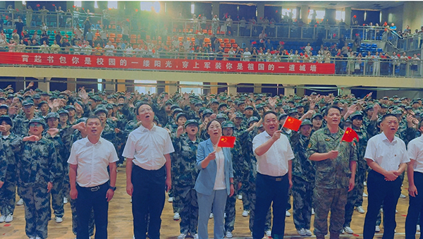 济南高新区管委会教育文体部党组书记、部长高一鸣出席活动并讲话,他首先向辛勤付出的教官们致以衷心感谢,肯定教官们的专业与坚守。随后,高一鸣对全体新生提出期望。他强调,新生要将军训所学延续到未来学习生活中:一要守护健康体魄,延续军训锻炼习惯,以健康身体为成长积蓄能量;二要向教官学习,传承军人严明纪律、过硬作风与强烈责任感,厚植家国情怀,增强民族自豪感;三要将军训锤炼的坚毅、自律等品格,与学校学生誓词深度融合,以誓词为准则规范言行。高部长特别指出,军训的核心在于历炼高品质意志品格,而坚定的意志是克服困难的勇气、追逐目标的恒心,更是未来走向成功的坚实基础,希望全体学生能够将军训收获转化为成长动力,稳步前行。