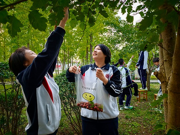 同学们穿着整齐的校服,分工协作,有的小心翼翼地将成熟的果实从藤蔓上摘下,有的负责细心收集和搬运,还有的同学充当起“质量检验员”,确保每一个果实都完好无损。平日里手握笔杆的学子们,此刻化身为勤劳的“小农夫”,在田间地头挥洒着汗水,体验着收获的喜悦。老师们也参与其中,一边指导采摘技巧,一边与同学们分享劳动的乐趣,其乐融融的场面格外温馨。