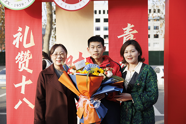 成人礼当日,家长们满怀期许抵达校园,高三学子们则在指定区域有序集结。学子们与家长在签名墙前郑重落下自己的名字,用笔墨定格这一意义非凡的瞬间,宣告着对成年责任的接纳与担当。随后,在家长与孩子并肩走过红毯,同学们依次迈过成人门,正式开启这场承载着期盼与使命的成人礼仪式。