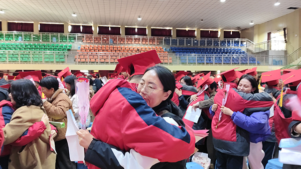 温馨热烈的师生互动环节中,学子们为恩师献上鲜花,以深深鞠躬致谢三年来的悉心教诲与无私奉献。